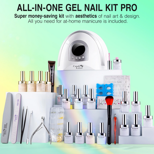 Candy Lover Gel Nail Kit with UV Lamp, 16 Neutral Colors Gel Nail Polish Set, 132W UV Nail Light & Nail Art Accessories