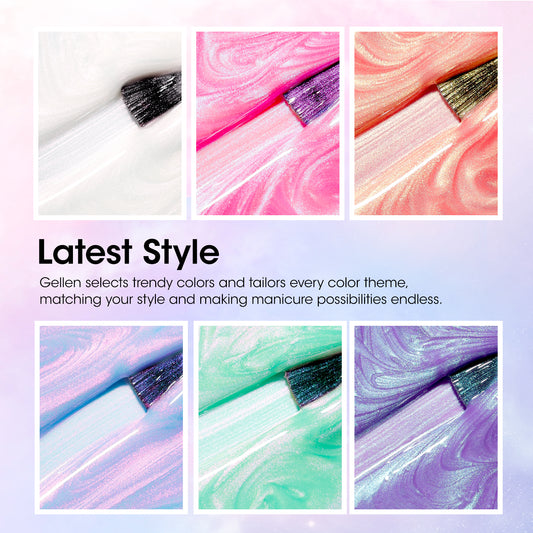 Gellen Pearl Gel Nail Polish, 6 Colors Glitter White Pink Purple Blue Yellow Green Pearl Shimmer Mermaid Gel Polish Set Pearlescent Shell Nail Gel Kit Swirl Thread Effect Nail Drawing Gel