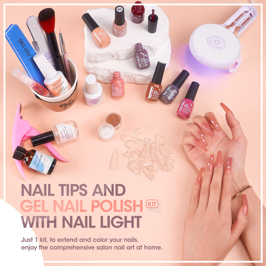 Gellen Gel Nail Polish Kit, 8 Nudes Pink Grey Colors Gel Polish Set With 36W UV Light Nail Dryer, 504Pcs Coffin Fake Nails Tips Glue Gel Nail Prep Kit, Gel Top and Base Coat, Manicure Tools