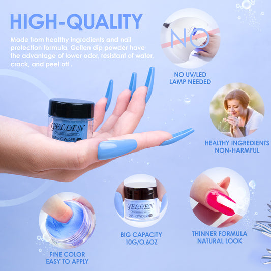 Gellen Dip Powder Nail Kit, 24 Colors Bright Red Pink Purple Glitter Dip Nail Powder Kit, Nail Art All Season Series Dip Powder Set DIY Salon Home Gift for Women