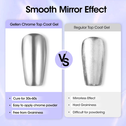 Gellen Gel Top Coat for Chrome Nail Powder, 18ML No Wipe Clear Top Coat Gel Nail Polish, High Glossy Mirror UV Gel Top Coat, Soak off Top Gel for Metallic Gel