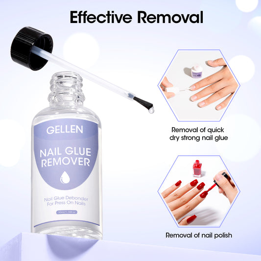 Gellen Nail Glue Remover for Press on Nails, 50ml Acetone-free Gentle Nail Glue Remover for Quick Dry Strong Nail Glue & Nail Polish & Fake Nail Tips Remover